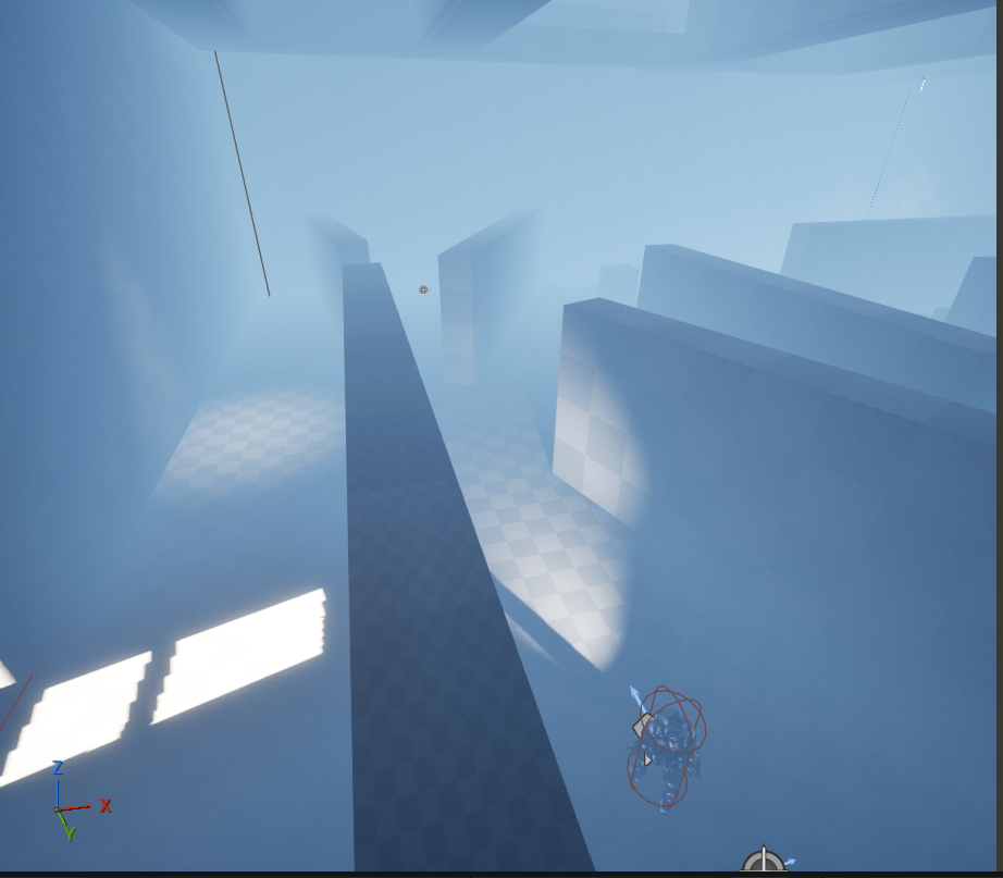 Far sight enemies hang out on the first floor. They see pretty far and their flashlights light farther to match. The walkways however hold the original enemies made, who have notably much smaller vision cones. These tiny cones are required for the walkways, which were designed on a basic level for the player not to be seen across their gaps, but were both very easy and weird looking in a more open plane, hence far sight enemies. The enemy in the hallway is also a basic, as I think the tight space works in the enemy’s favor enough, though this might change.